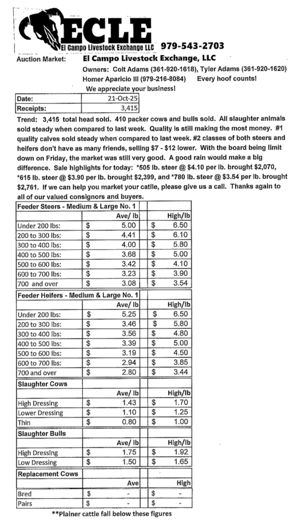 Copyright ©2025 El Campo Livestock Exchange, LLC. All rights reserved.